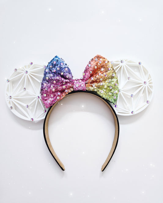 Magic Mountain ears ORIGINAL design- LIGHT pink jelly/resin Rhinestone rings WITH Light pink jelly rhinestone bow 3D Mouse Ears