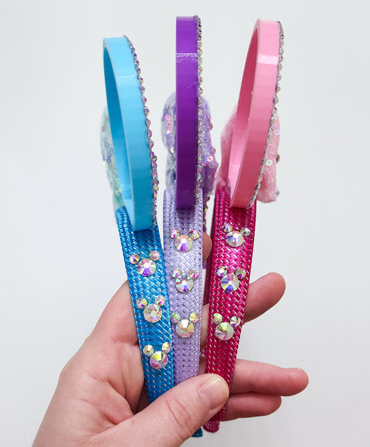 Magic Mountain ears ORIGINAL design-AB Rhinestone rings with AB rhinestone silver sequin bow 3D Mouse Ears all sides covered